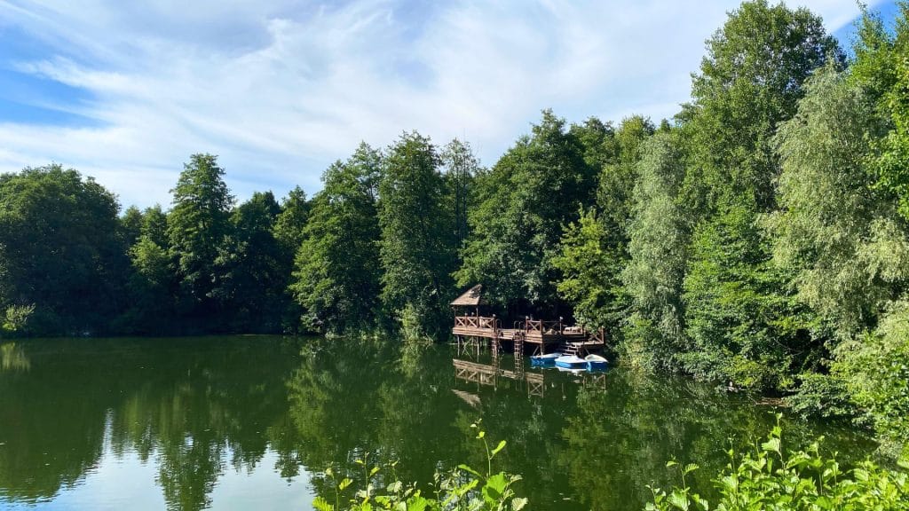 Гарячий чан з ароматичними травами, розташований прямо на березі озера, подарує незабутні моменти релаксації та гармонії з природою.