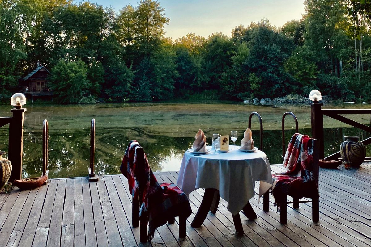 - Посещение ресторана. Гости оценят вкусную кухню, разнообразное меню и особую атмосферу. В загородных комплексах чаще строят рестораны из экологически чистых материалов, натурального дерева. Посетители смогут выпить кофе или пообедать с видом на лес, озеро.